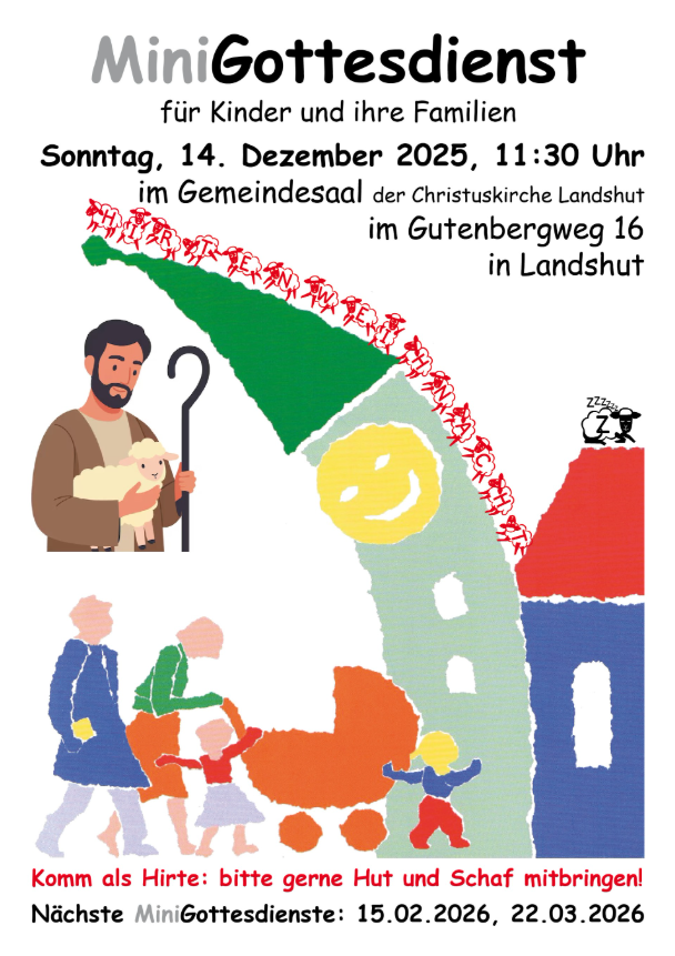 Zu unseren Minigottesdienst im Advent zum Thema "Hirtenweihnacht" laden wir herzlich alle Vorschulkinder, sowie deren Geschwister, Eltern und andere Verwandte ein.